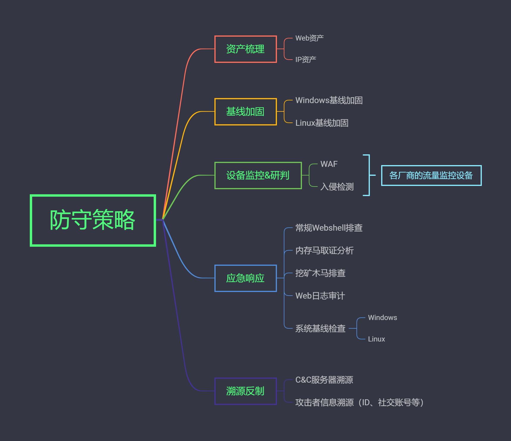 当然也不能坐以待毙,发现被打进来后要迅速应急响应把危害和损失控制到最小范围,真正的做到可感、可控。